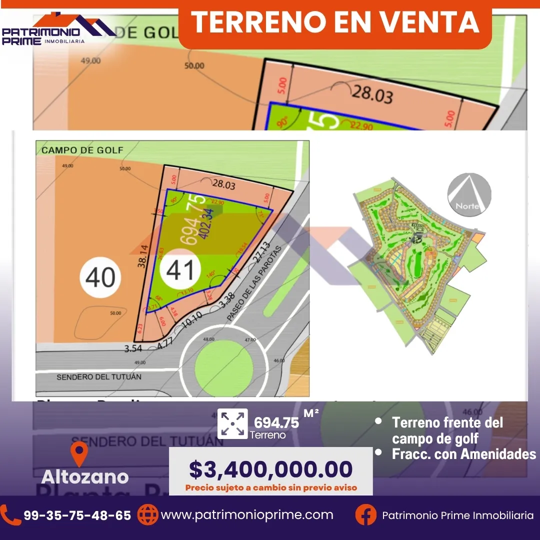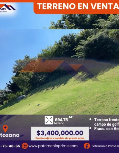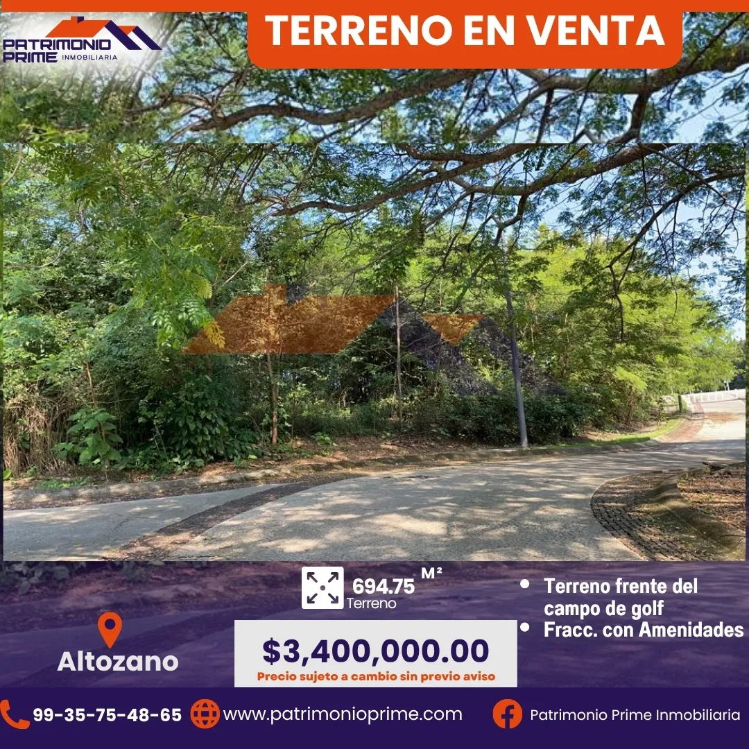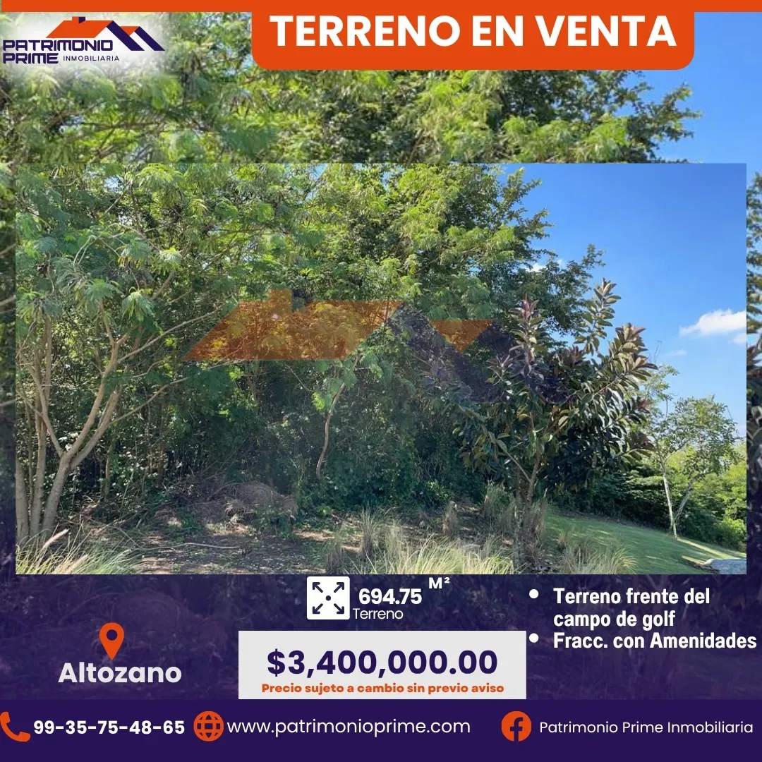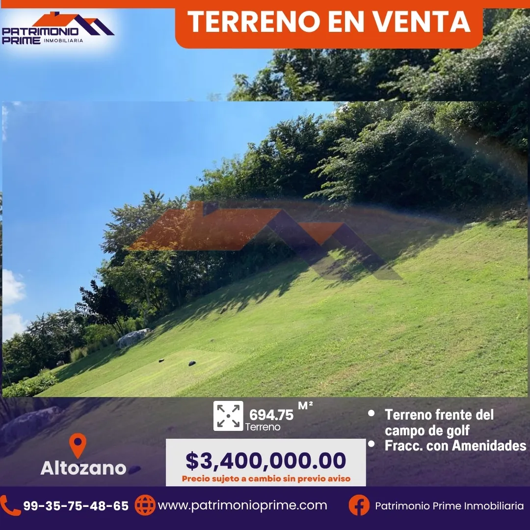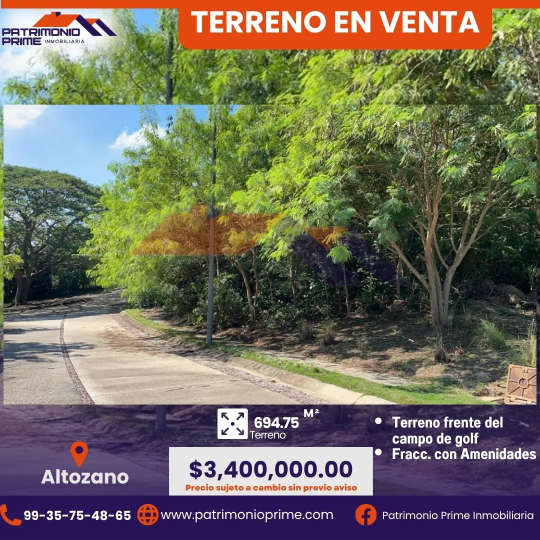 Este terreno de 694.75 m² está ubicado frente al campo de golf en el prestigiado fraccionamiento Altozano, una de las zonas con mayor plusvalía y seguridad de la ciudad. 🌳✨