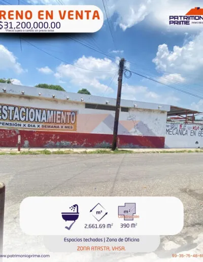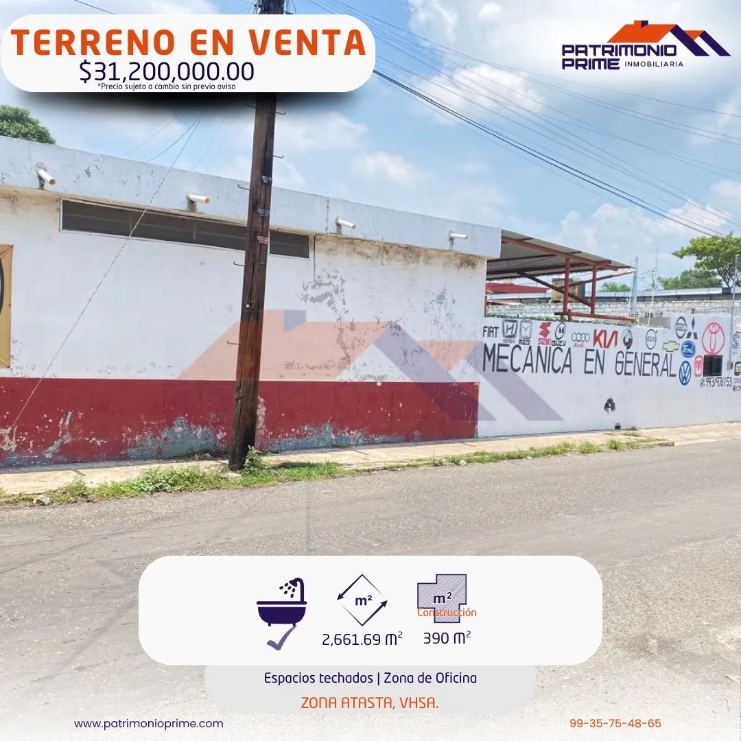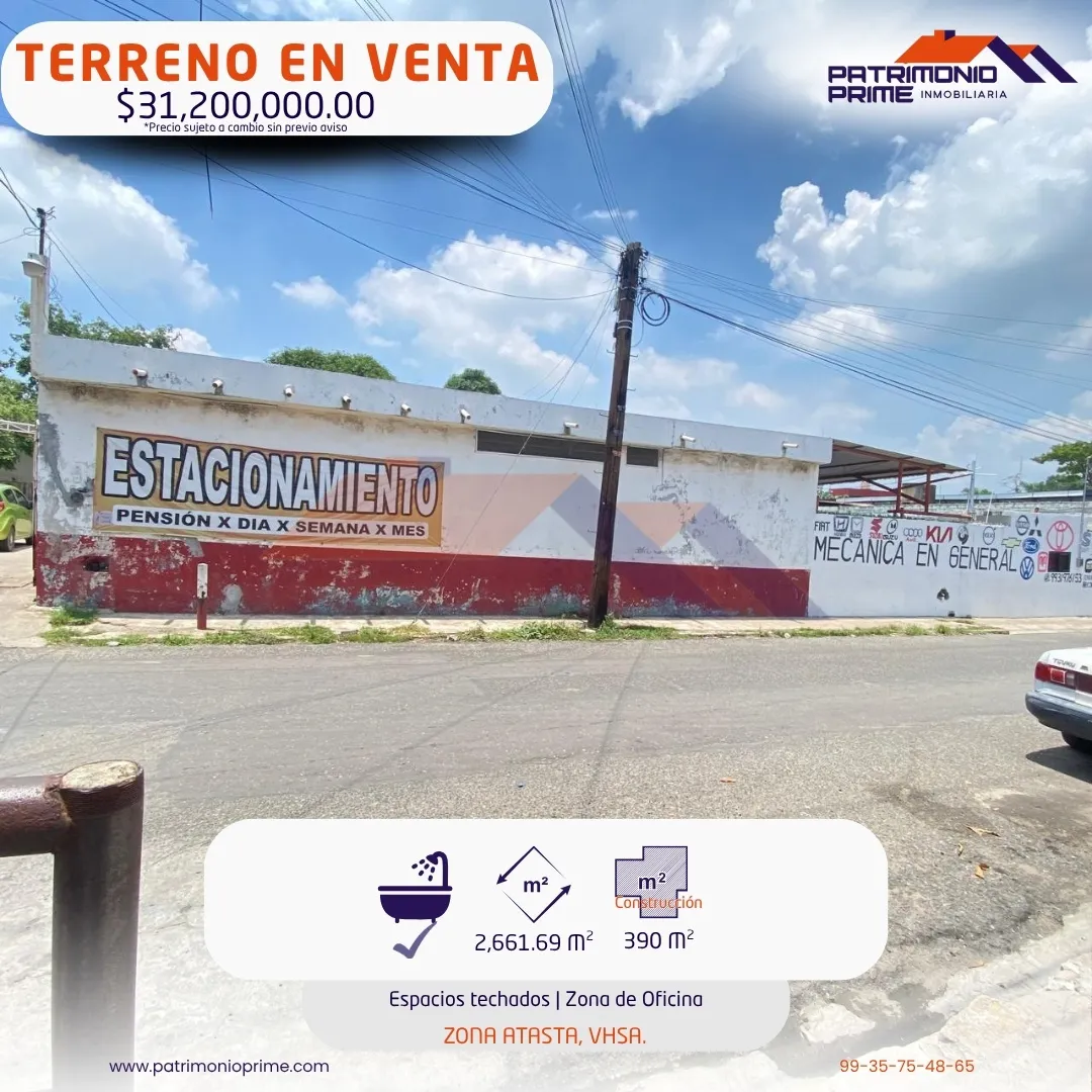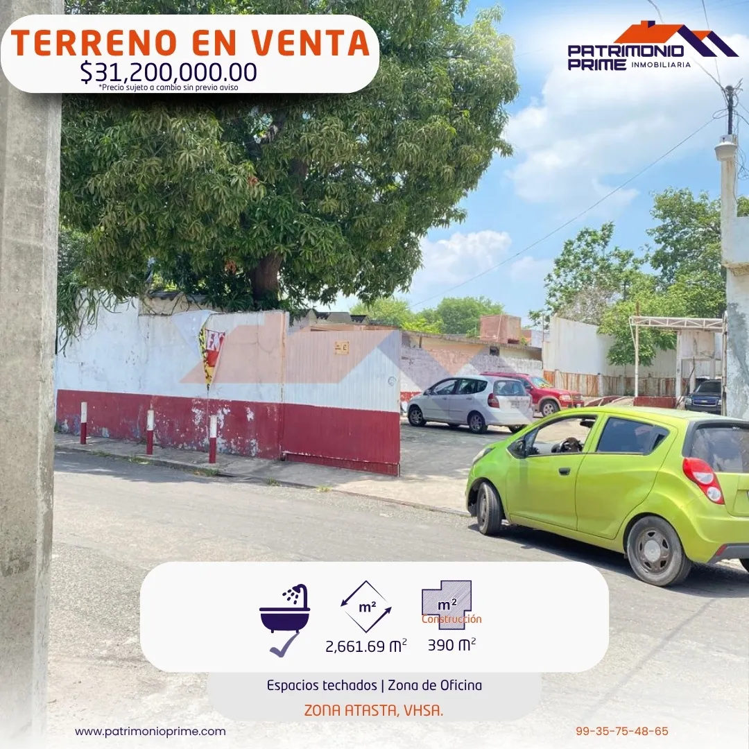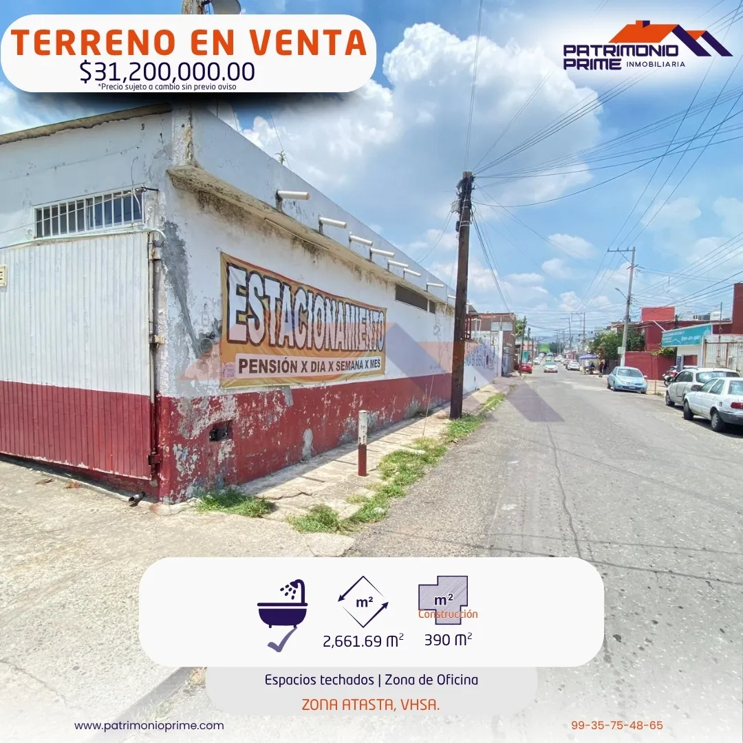 - TERRENO EN VENTA con un gran potencial 🚀 en la Zona Atasta, VHSA.📍