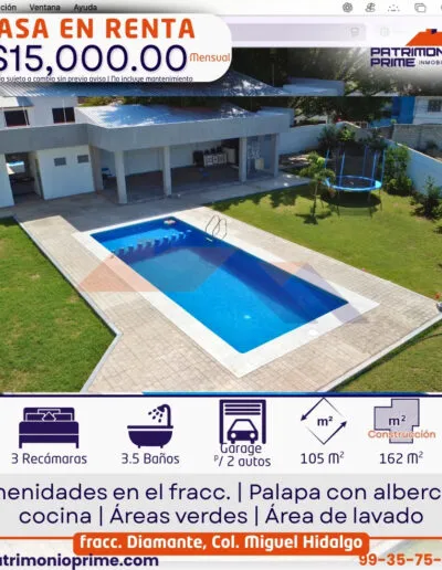 💰 Renta mensual: $15,000.00
