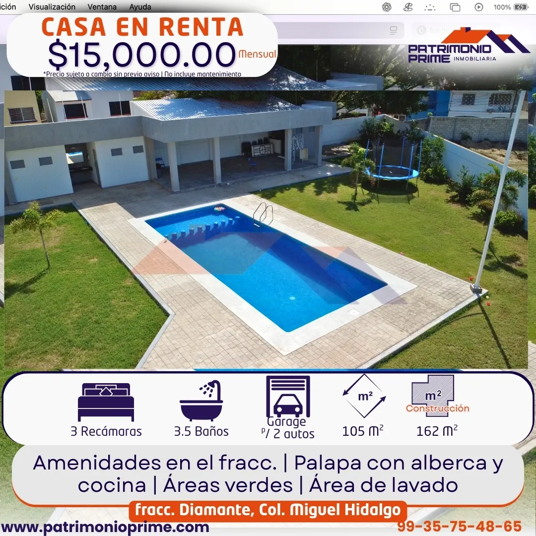 • 🌴 Amenidades en el fracc.: palapa con alberca y cocina